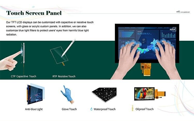 R: podemos oferecer RTP (Painel de toque resistivo) e CTP (Painel de toque capacitivo) se você precisar.